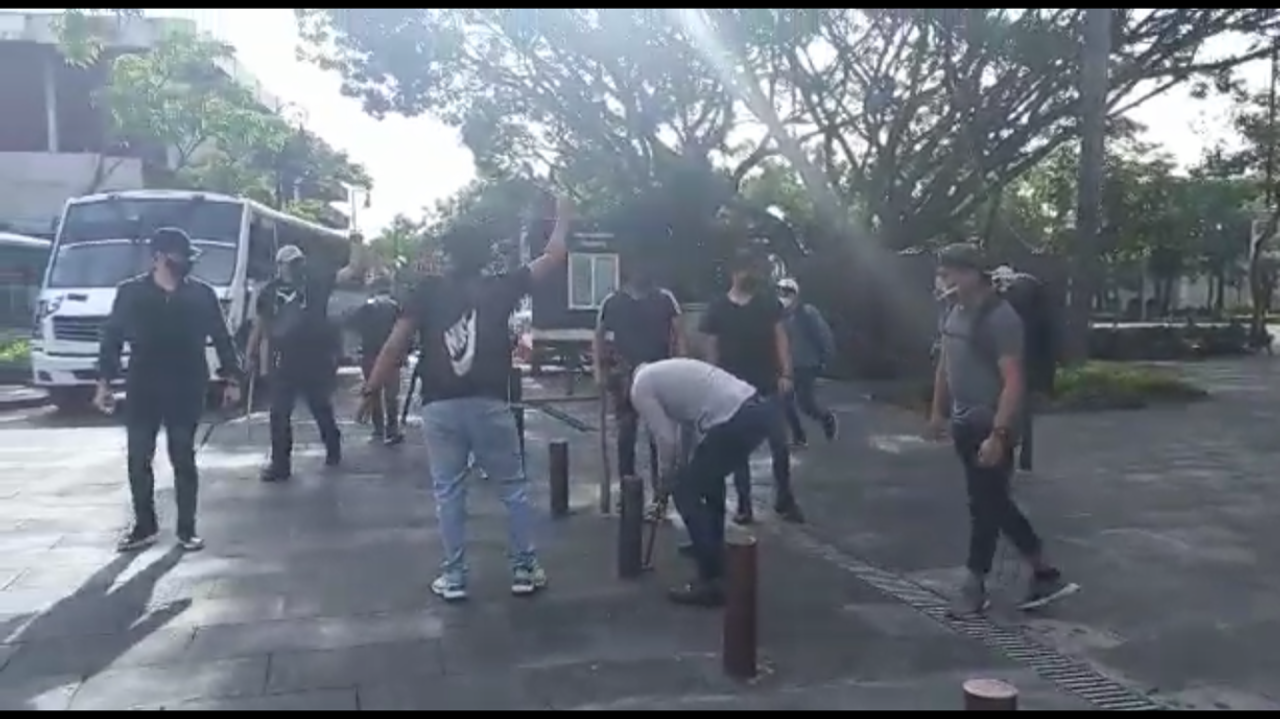 Antes de las 10 de la mañana con palos un marro y cincel supuestos estudiantes llegaron y quitaron las vallas que se habían sido colocadas en la plancha del zócalo de Cuernavaca ante el cambio de semáforo epidemiológico naranja para evitar contagios de covid, además de tirar dos bolardos (dos postes) para ingresar dos rutas 13 a la plancha como protesta al aumento al transporte.