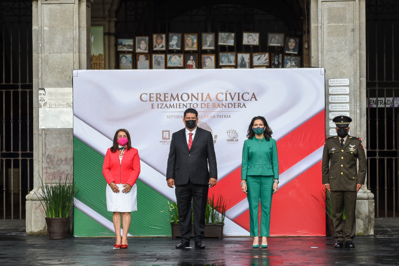 Como primer punto, se entonó el Himno Nacional Mexicano al sonido de la banda de guerra de la 24/a Zona Militar, Cecilia Rodríguez, representante del Poder Ejecutivo, acudió al izamiento de bandera a toda asta ondeando gloriosa como un recuerdo de la herencia cultural del estado de Morelos.
