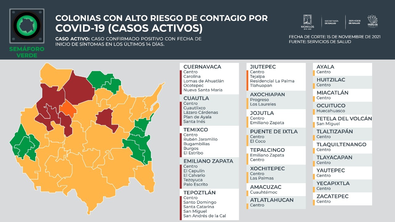 Los nuevos pacientes son 15 mujeres de Atlatlahucan, Cuernavaca, Huitzilac, Jojutla, Ocuituco, Tepalcingo, Tlaquiltenango, Tlayacapan y Zacatepec; de las cuales, 13 se encuentran aisladas en sus hogares y 2 decesos.