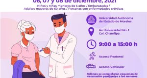 El Gobierno de Morelos, a través de la Secretaría de Salud y Servicios de Salud de Morelos (SSM), informó que se instalará un módulo de vacunación contra influenza para grupos vulnerables en la Universidad Autónoma del Estado de Morelos (UAEM), en Cuernavaca, del 06 al 08 de diciembre. Laura Elena ...