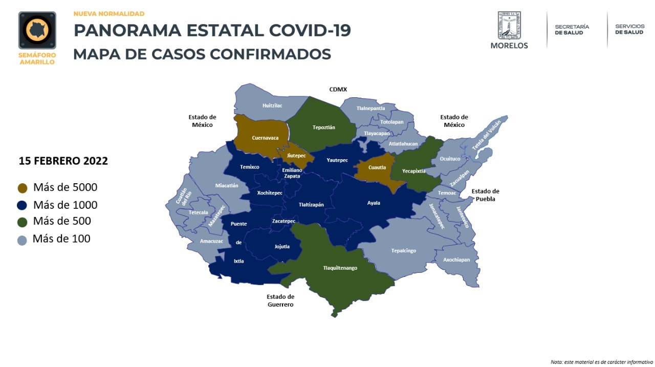Los nuevos pacientes son 99 mujeres de Atlatlahucan, Axochiapan, Ayala, Cuautla, Cuernavaca, Huitzilac, Jiutepec, Jojutla, Tlaltizapán, Tlaquiltenango, Xochitepec, Yautepec, Zacatepec, Huehuetlán el Chico, de Puebla y Ozumba del Estado de México; de las cuales 93 están aisladas en sus hogares, 4 hospitalizadas graves y 2 decesos.