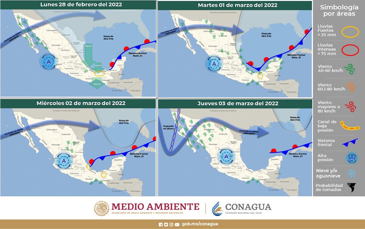 La Comisión Estatal del Agua (Ceagua) informa que para la semana del 28 de febrero al 03 de marzo se espera cielo despejado a medio nublado, con temperaturas de 25 a 39 °C en promedio sobre territorio morelense.