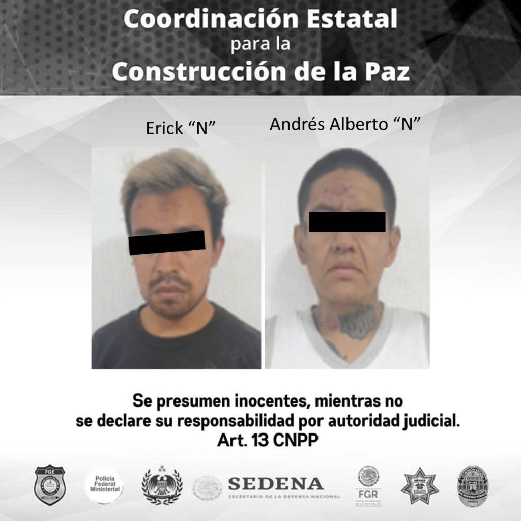 Por lo anterior, fueron detenidos Andrés Alberto “N”, de 29 años, y Erick “N”, de 31 años de edad, quienes fueron presentados ante el agente del Ministerio Público, el cual determinará su situación jurídica.
