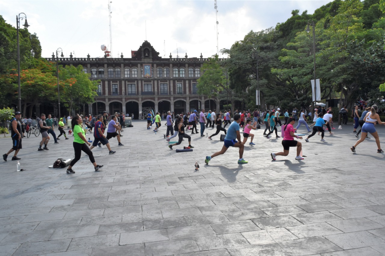 Reunidos en la Plaza de Armas “General Emiliano Zapata Salazar”, el instructor Wagner Rocha encabezó 60 minutos de ejercicios de resistencia de media y alta intensidad de esfuerzo y recuperación.
