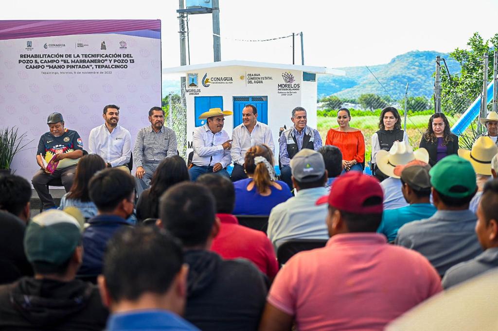 En gira de trabajo por la zona oriente de Morelos, el gobernador Cuauhtémoc Blanco Bravo entregó la rehabilitación de los pozos de agua 5 y 13, pertenecientes a los campos, “El Marranero” y “Mano Pintada”, respectivamente, ubicados en el municipio de Tepalcingo.