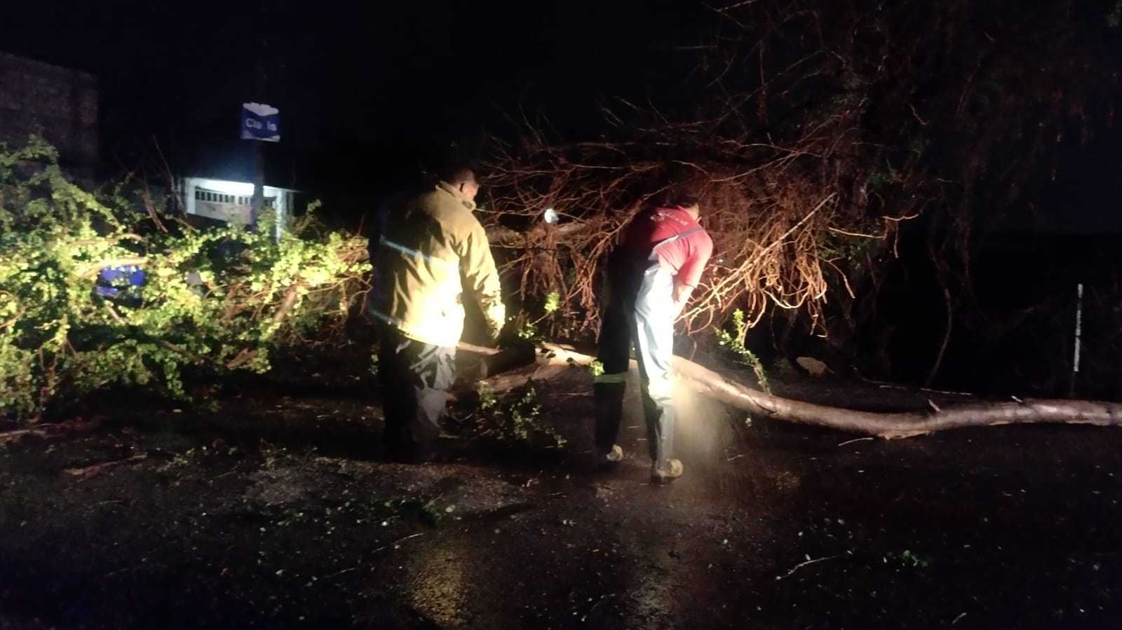 Los fuertes vientos y la lluvia registrada la noche de este domingo ocasionó que seis árboles colapsaran y se vinieran abajo, uno de ellos frente a un domicilio particular donde generó daños a un automóvil estacionado.