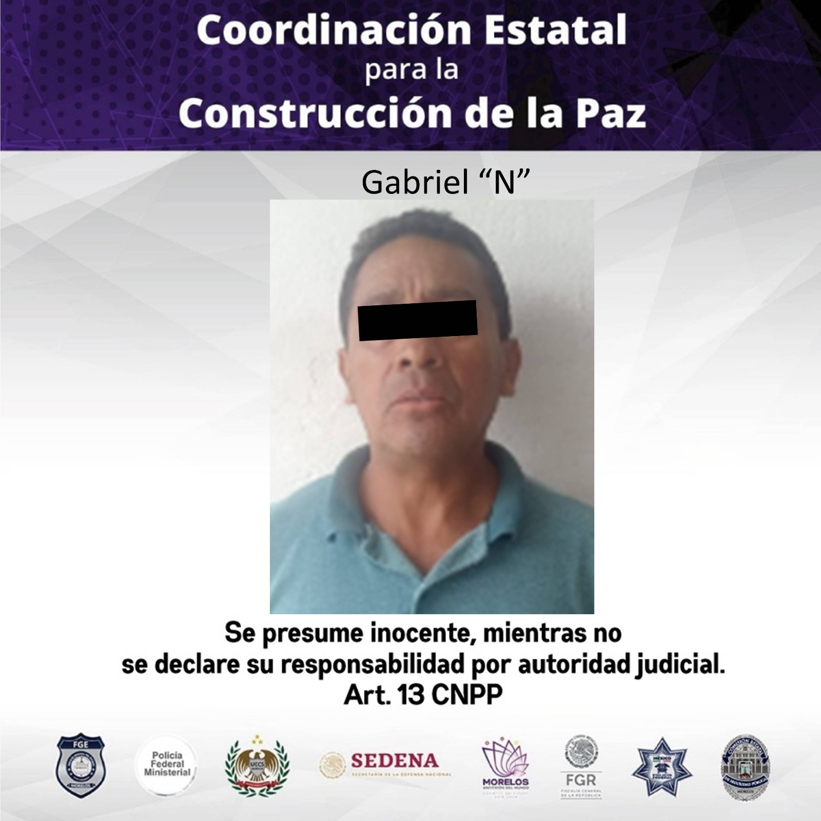 Por lo anterior, y ante el señalamiento directo, fue detenido Gabriel “N”, de 53 años de edad, siendo puesto a disposición del agente del Ministerio Público del Fuero Común quien determinará su situación jurídica.