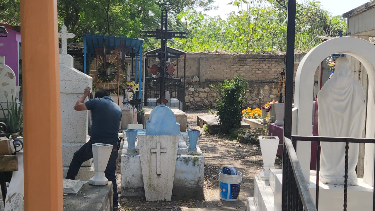 La «pintada» de las tumbas en este año ronda los 450 pesos y los niños que laboran limpiando es una cooperación voluntaria.