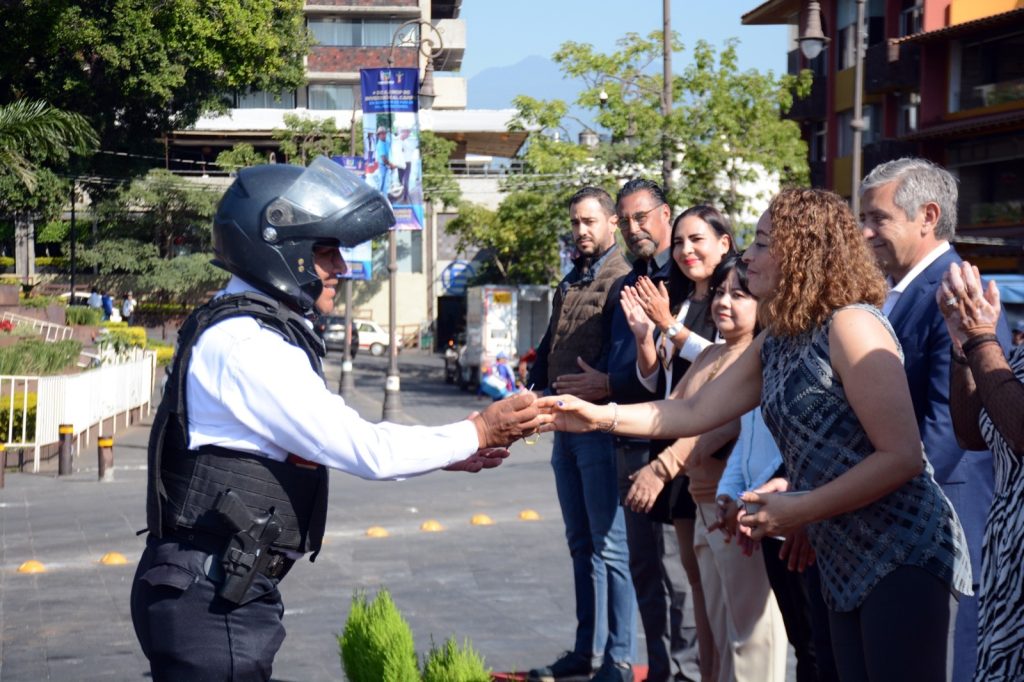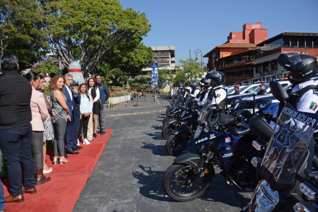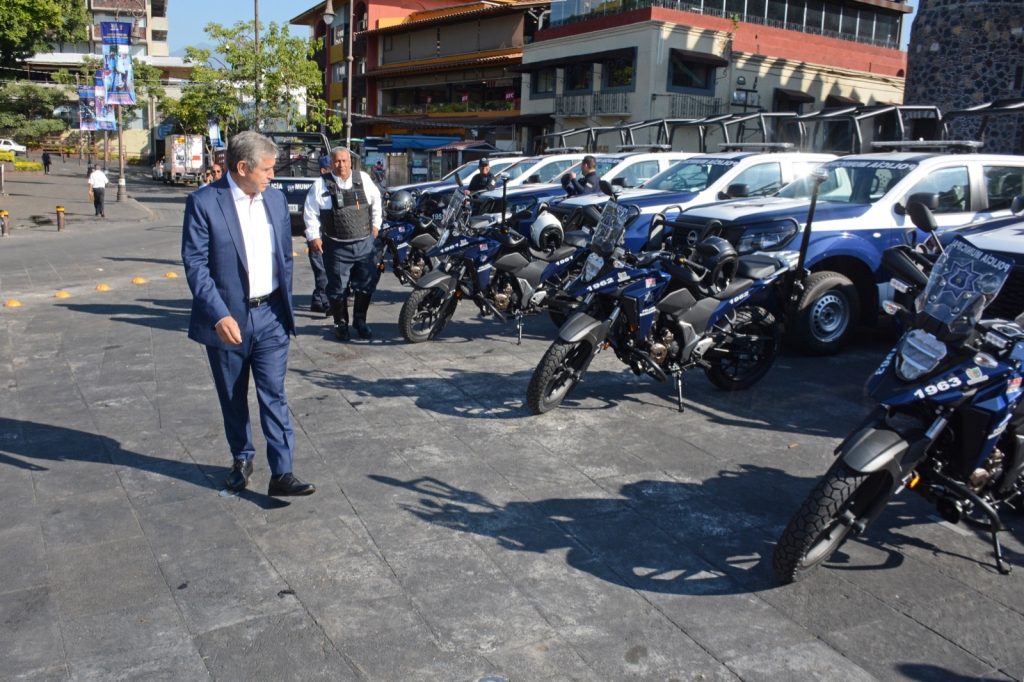 En la explanada del Palacio de Cortés, con la presencia del secretario técnico de la Mesa Regional para la Construcción de Paz, Javier Sotres Ruano, de representantes de la iniciativa privada, de la sociedad civil y miembros del Gabinete, José Luis Urióstegui destacó que a dos años de esta administración se continúan canalizando recursos para la prevención integral en la ciudad, donde los policías prestan servicios de prevención, disuasión y de auxilio a la población con equipamiento de primer nivel; hoy se cuentan con 30 patrullas adquiridas desde el año pasado y la presente anualidad, además de más de 20 motocicletas que están circulando en todo el municipio.