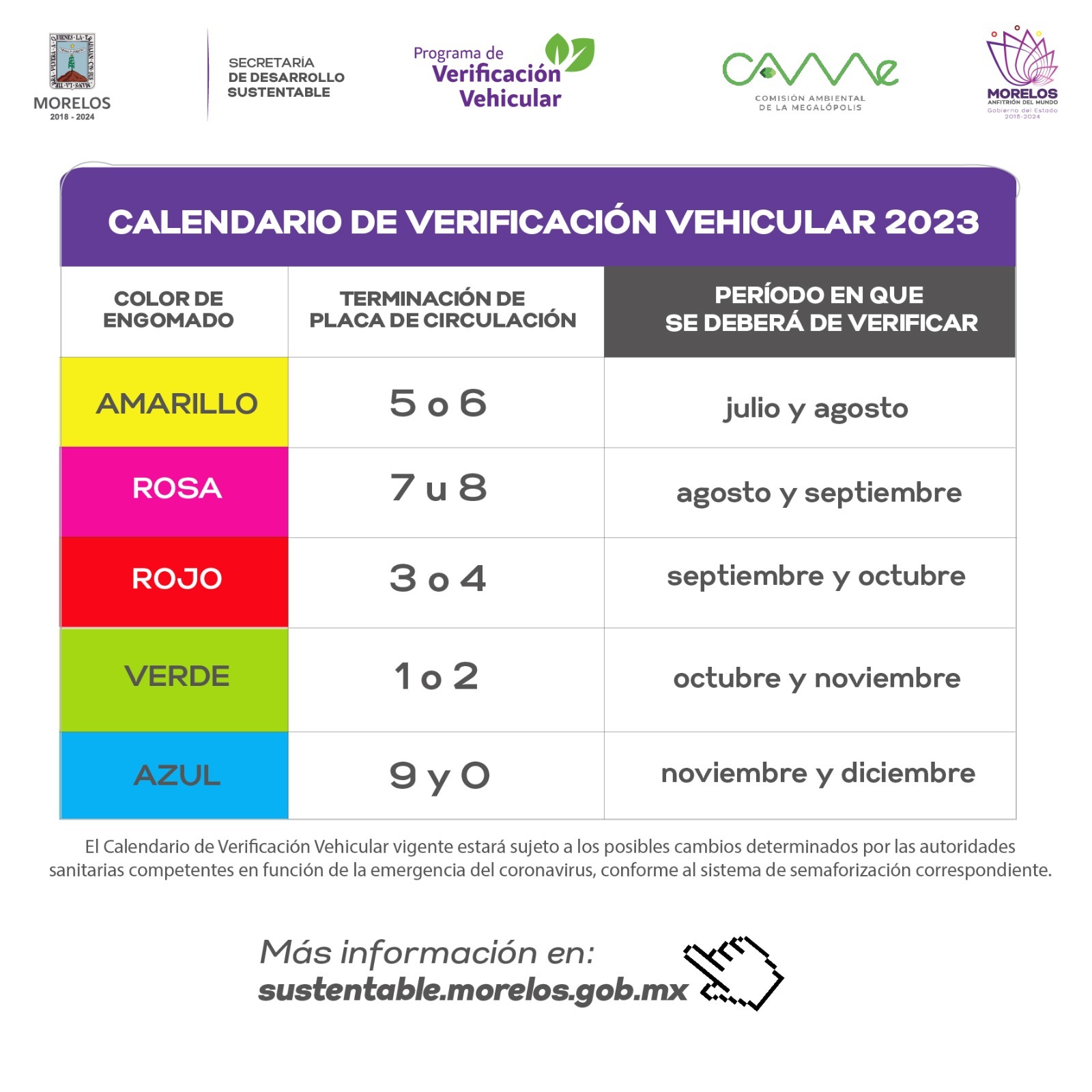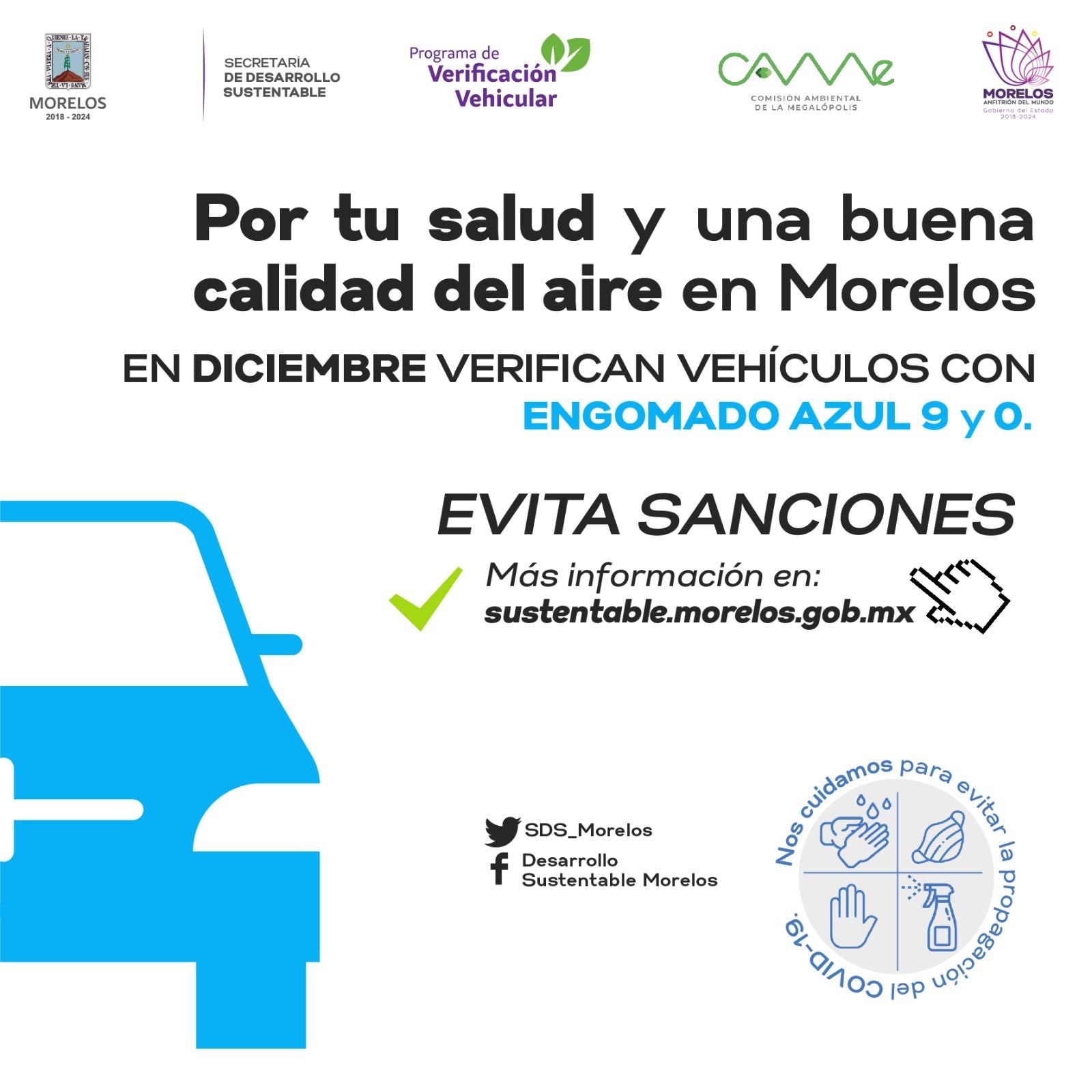 De acuerdo al Calendario de Verificación Vehicular, en diciembre verifican los automotores con engomado azul, terminaciones de placas 9 y 0; en tanto que en enero corresponde a las placas con engomado amarillo, terminación 5 o 6.