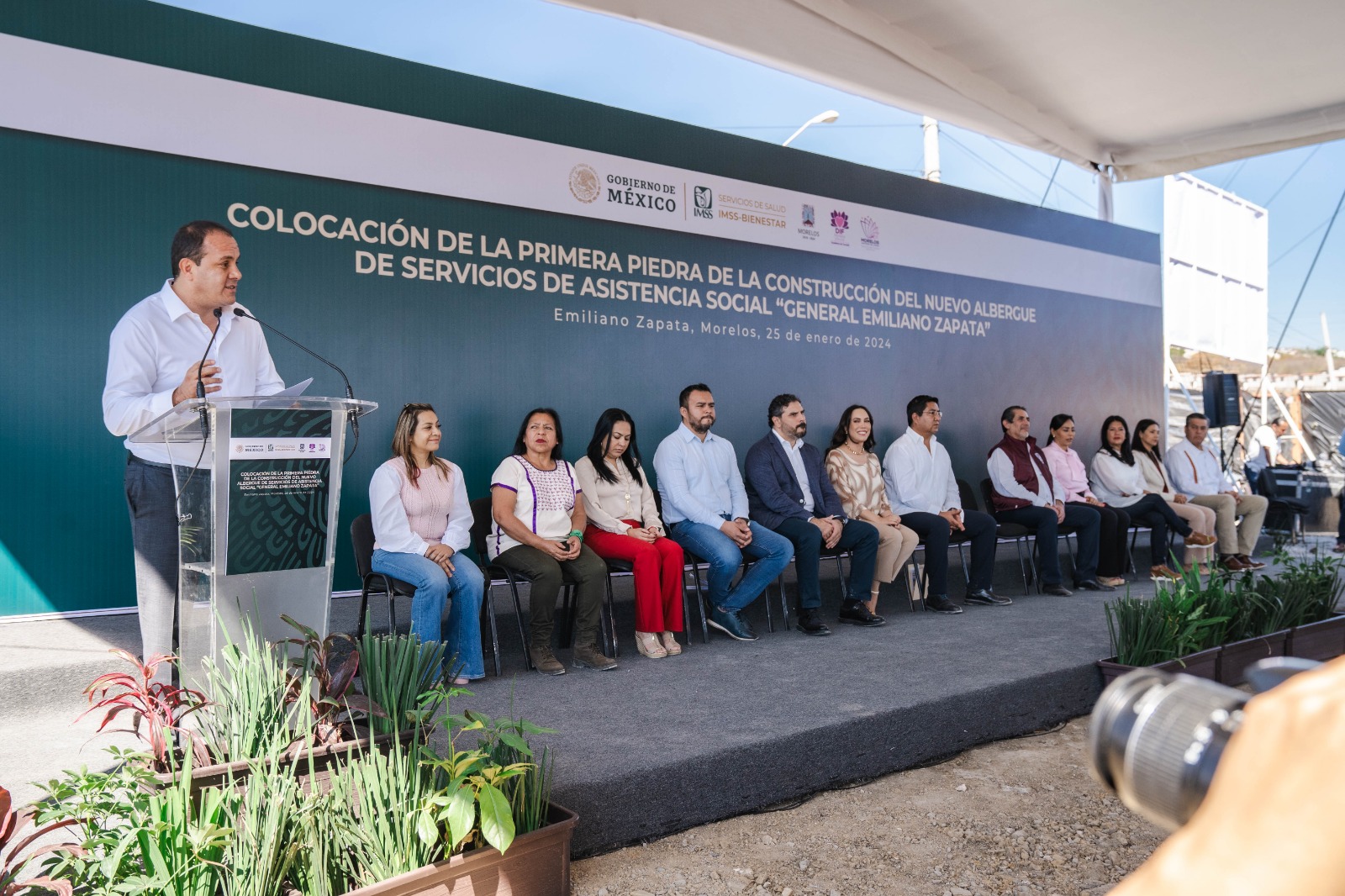Con el firme propósito de generar cada vez más acciones que beneficien a la población que demanda atención prioritaria, el gobernador Cuauhtémoc Blanco Bravo en compañía de su esposa y presidenta del Sistema Estatal DIF (SEDIF) Morelos, Natália Rezende Moreira, autoridades federales, estatales, municipales y ciudadanos llevaron a cabo la colocación de la primera piedra del Albergue de Servicios de Asistencia Social “General Emiliano Zapata”.