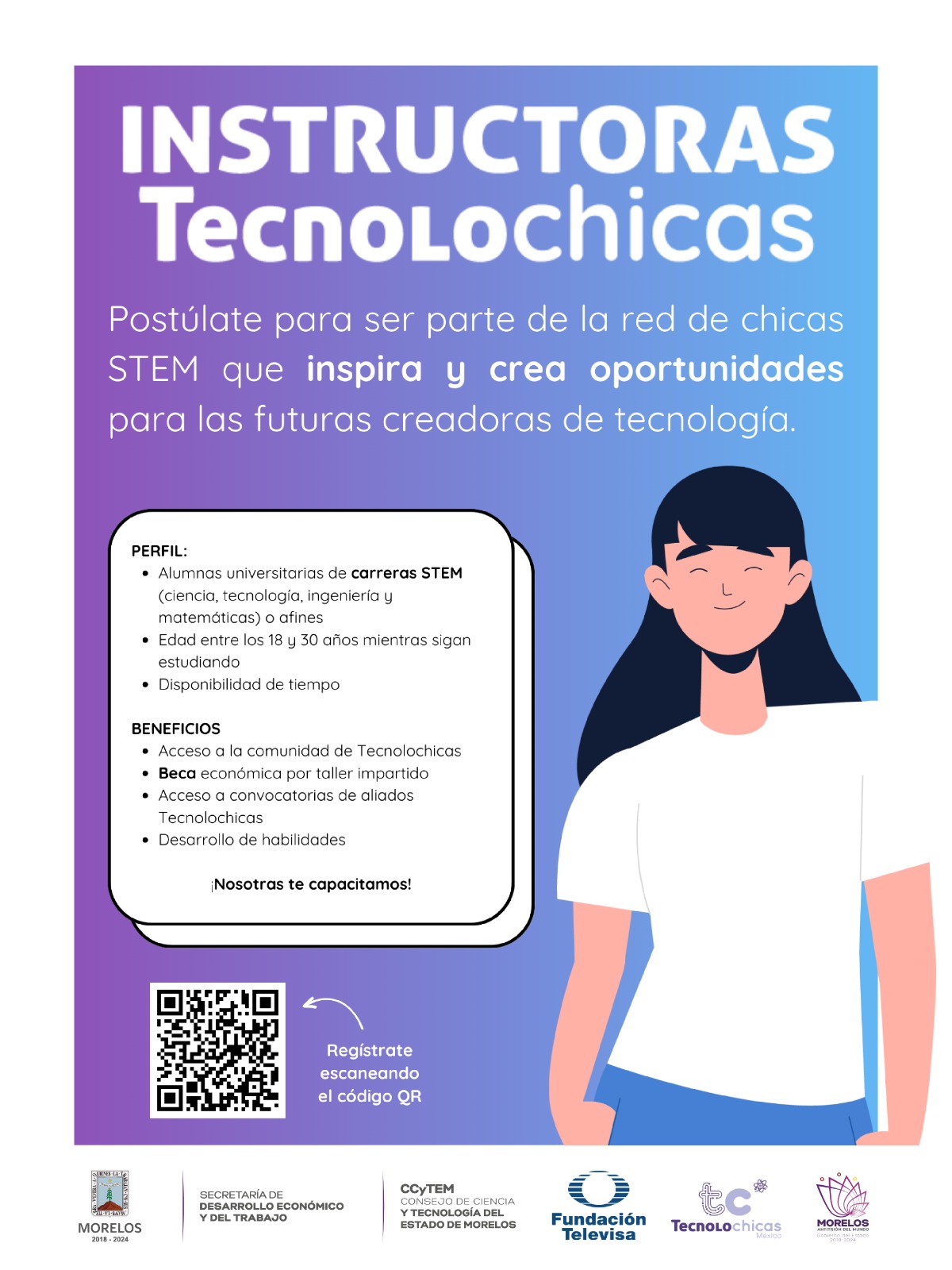 La Secretaría de Desarrollo Económico y del Trabajo (SDEyT), a través del Consejo de Ciencia y Tecnología del Estado de Morelos (CCyTEM), invita al programa de capacitación “Tecnolochicas” diseñado para niñas y universitarias.