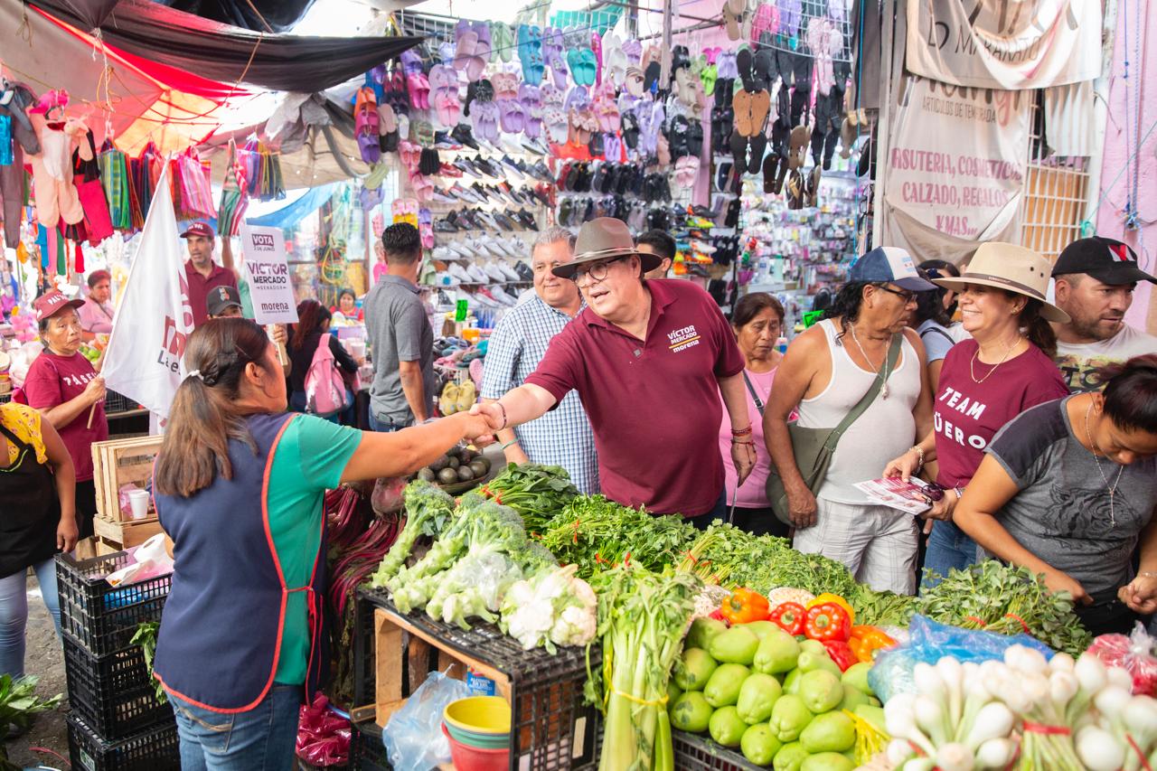 Tras la invitación a visitar el mercado, que le hicieron varios liderazgos, Víctor Mercado saludó y platicó con los comerciantes, locatarios y consumidores, quienes solicitaron más apoyo para incentivar la economía local.