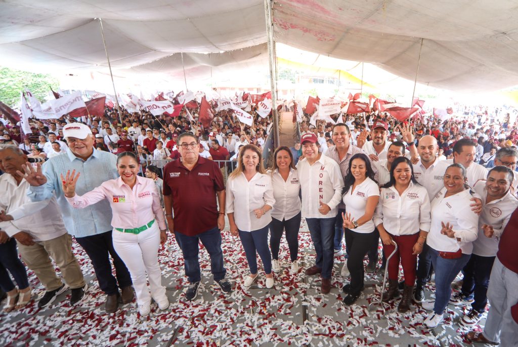 Junto a líderes nacionales y ante cinco mil militantes y simpatizantes, señaló que aquí se escribe la nueva historia, donde triunfa el partido morenista frente a los partidos corruptos. Reiteró que su gobierno tendrá como bastión el legado del presidente de «No robar, no mentir y no traicionar al pueblo».