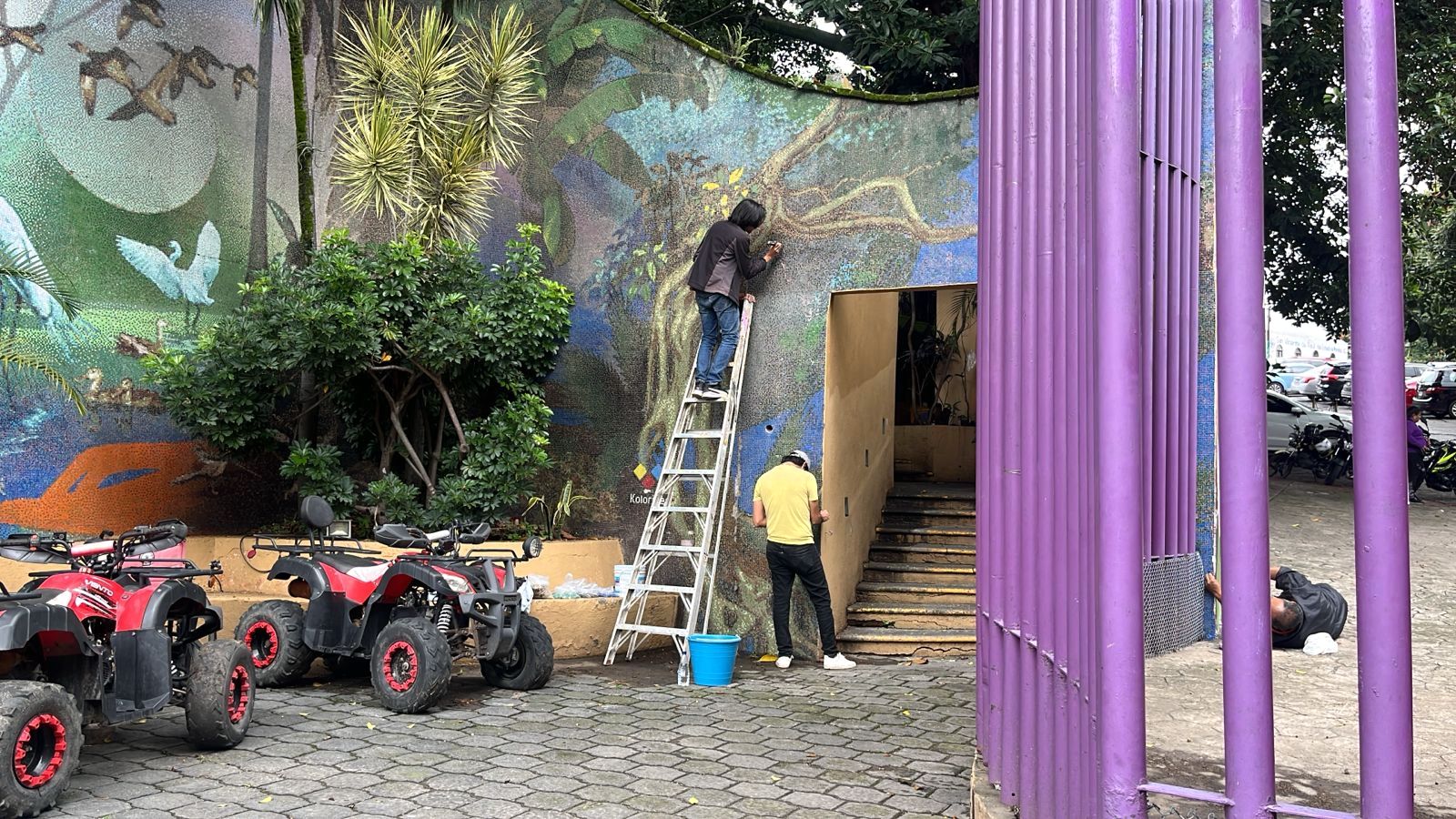 En este sentido, indicó que desde el 2003, aproximadamente, el mural no recibía mantenimiento por lo que toda la familia de colaboradores que trabajan en el parque están agradecidos con el detalle, dado que el reemplazo de cada mosaico de 1×1 centímetros, es manual.