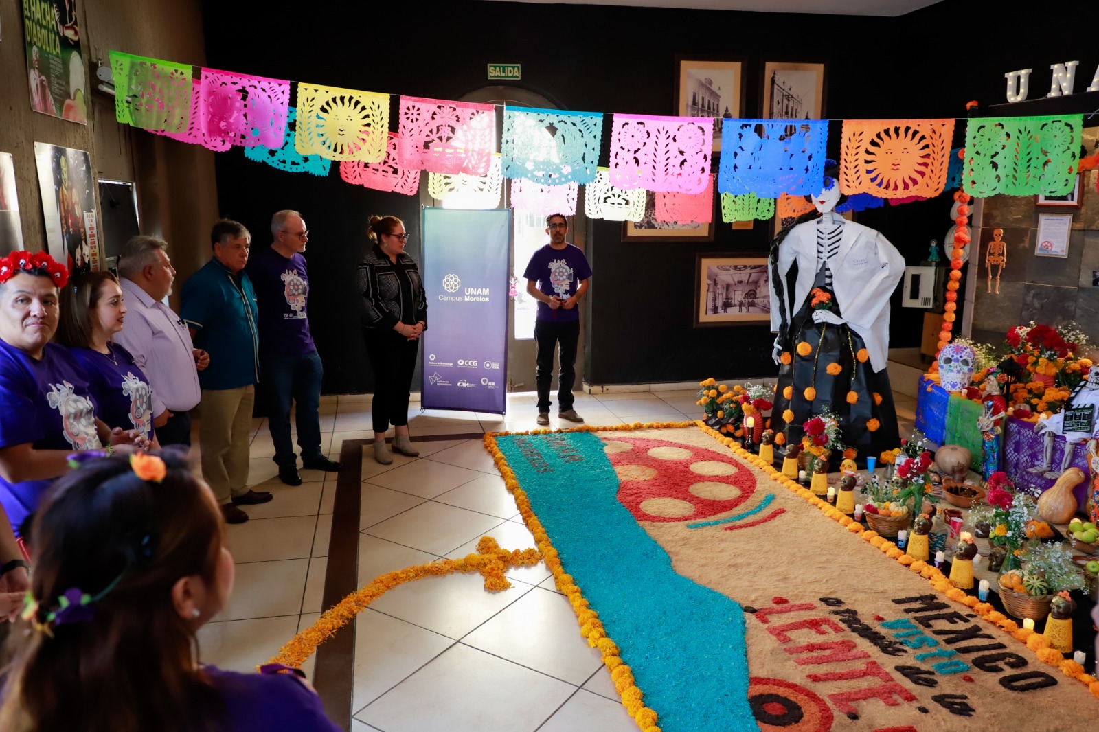 La titular de la dependencia estatal destacó que este año se trabajó en el montaje de una ofrenda con la Universidad Nacional Autónoma de México (UNAM) Campus Morelos, con la temática “México Visto a través de la Lente”, como homenaje a grandes productores de la filmografía nacional como Adalberto Ríos Szalay, Rafael Rebollar Corona y Lourdes Portillo