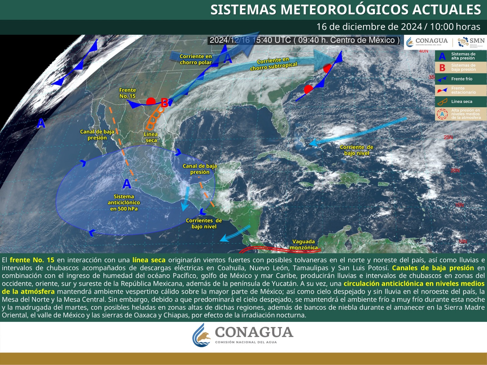 Nota: El presente boletín es de carácter informativo, ofrece una perspectiva general de las condiciones atmosféricas que podrían presentarse durante los siguientes días; sin embargo, se recomienda revisar las actualizaciones diarias del pronóstico del tiempo.