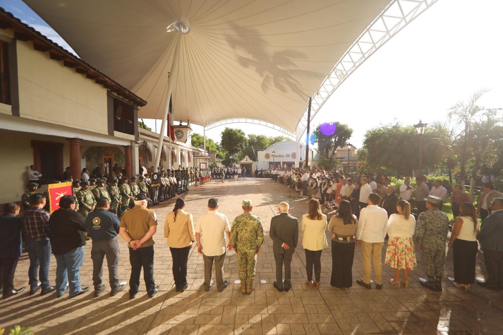 Previamente, la Gobernadora realizó Honores a la Bandera en la Plaza de la Constitución de la presidencia municipal, donde asistieron integrantes del gabinete, estudiantes de nivel básico, bachillerato y universidad, así como trabajadoras y trabajadores de la administración local. Minutos más tarde, presidió la Mesa de Coordinación Estatal para la Construcción de Paz y Seguridad, con ediles de la región poniente.