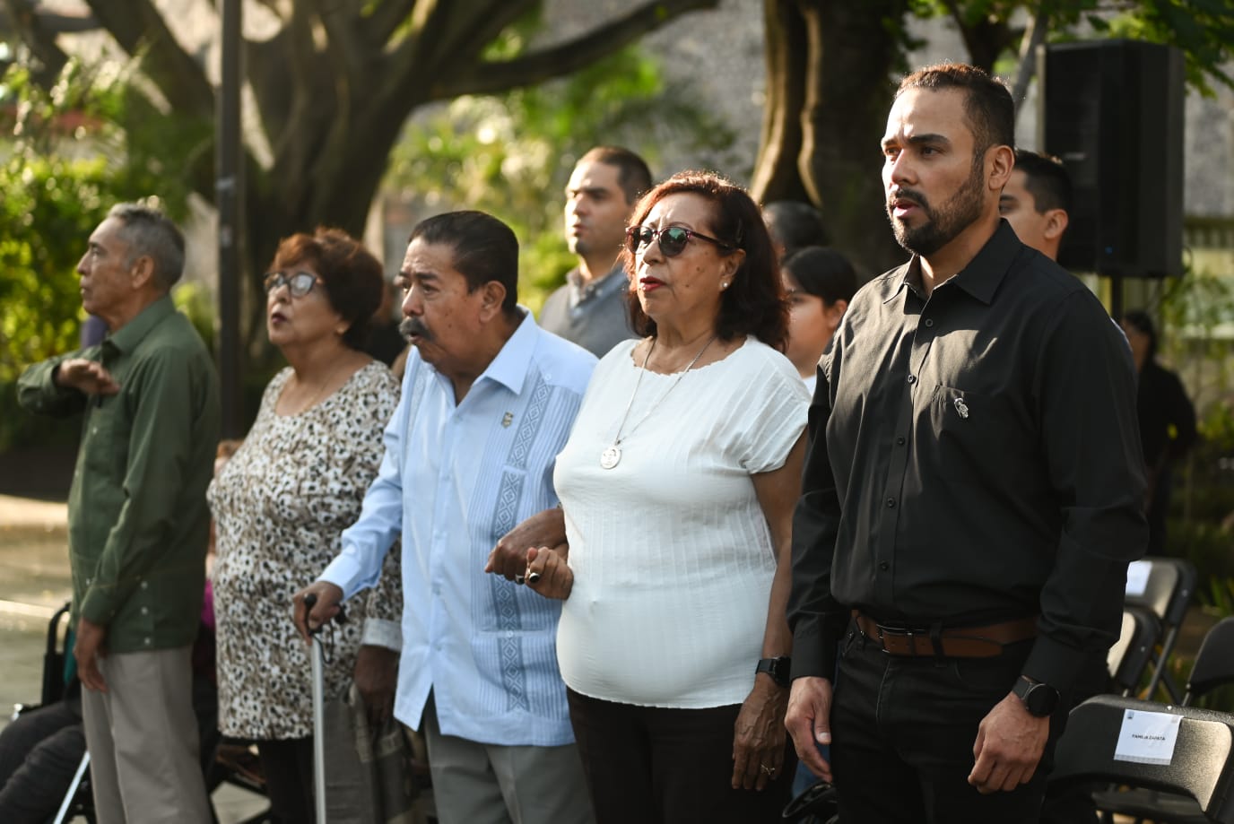 En el presídium, la gobernadora estuvo acompañada por integrantes del Gabinete legal; Jazmín Solano López, diputada presidenta de la Mesa Directiva del Congreso del Estado de Morelos; Juan Emilio Elizalde Figueroa, magistrado presidente del Tribunal Superior de Justicia del estado; Diego Prieto Hernández, titular de la Unidad de Culturas Vivas de la Secretaría de Cultura del Gobierno de México; y Felipe Arturo Ávila Espinoza, director del Instituto Nacional de Estudios Históricos de las Revoluciones de México.