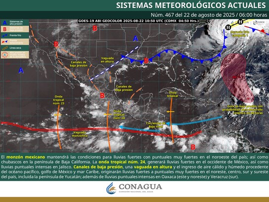La Comisión Estatal del Agua (Ceagua) da a conocer la perspectiva meteorológica para Morelos durante este fin de semana del 22 al 24 de agosto, se esperan condiciones cambiantes en el clima, mañanas y noches frescas, días cálidos a calurosos y lluvias fuertes acompañadas de tormentas eléctricas. Las precipitaciones podrían concentrarse principalmente en las regiones norte y sur del territorio estatal.