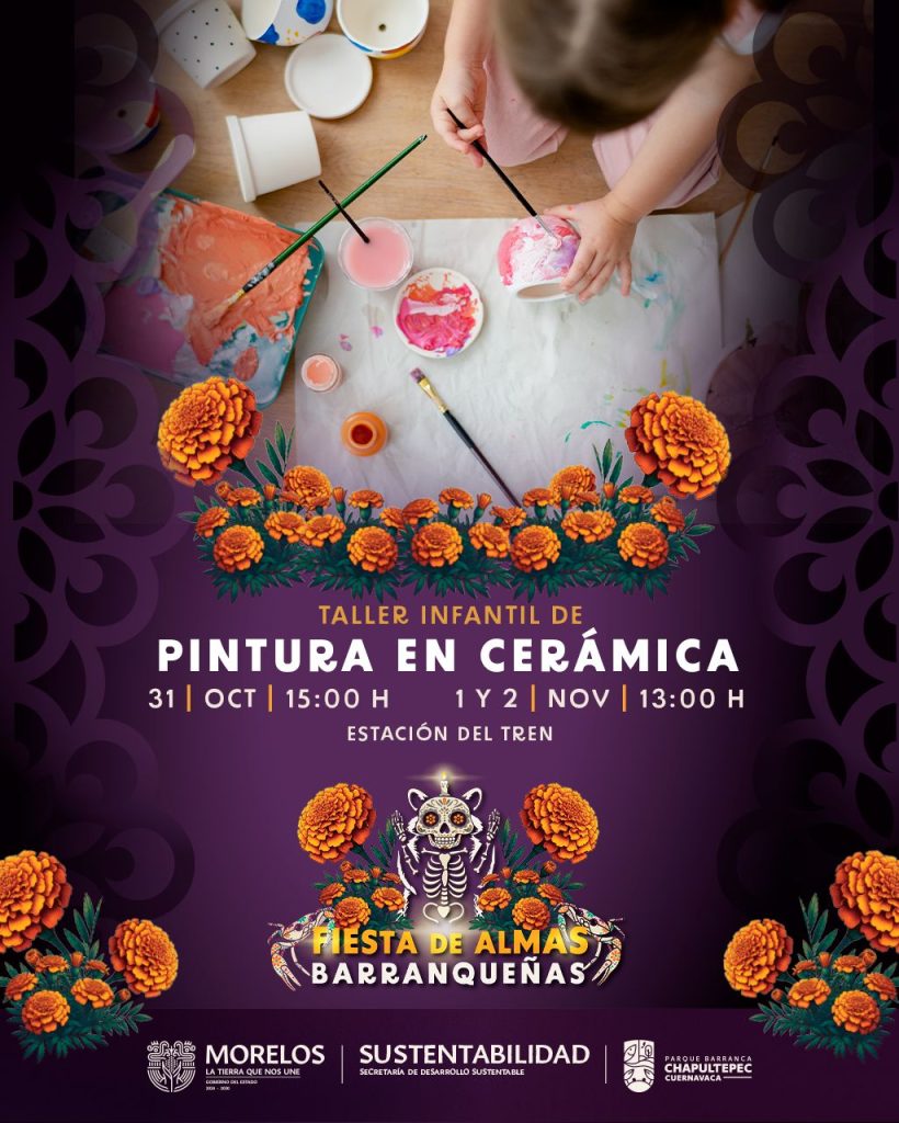 La Fiesta de Almas Barranqueñas en el Parque Estatal Urbano Chapultepec de Cuernavaca tiene una amplia cartelera. Este 31 de octubre se llevará a cabo, a las 15:00 horas, el taller infantil de pintura en cerámica en la Estación del Tren, así como la actividad de pinta caritas para niñas y niños en la explanada de las letras; en este mismo espacio, a las 16:00 horas, se presentará la Orquesta Filarmónica Uninter.