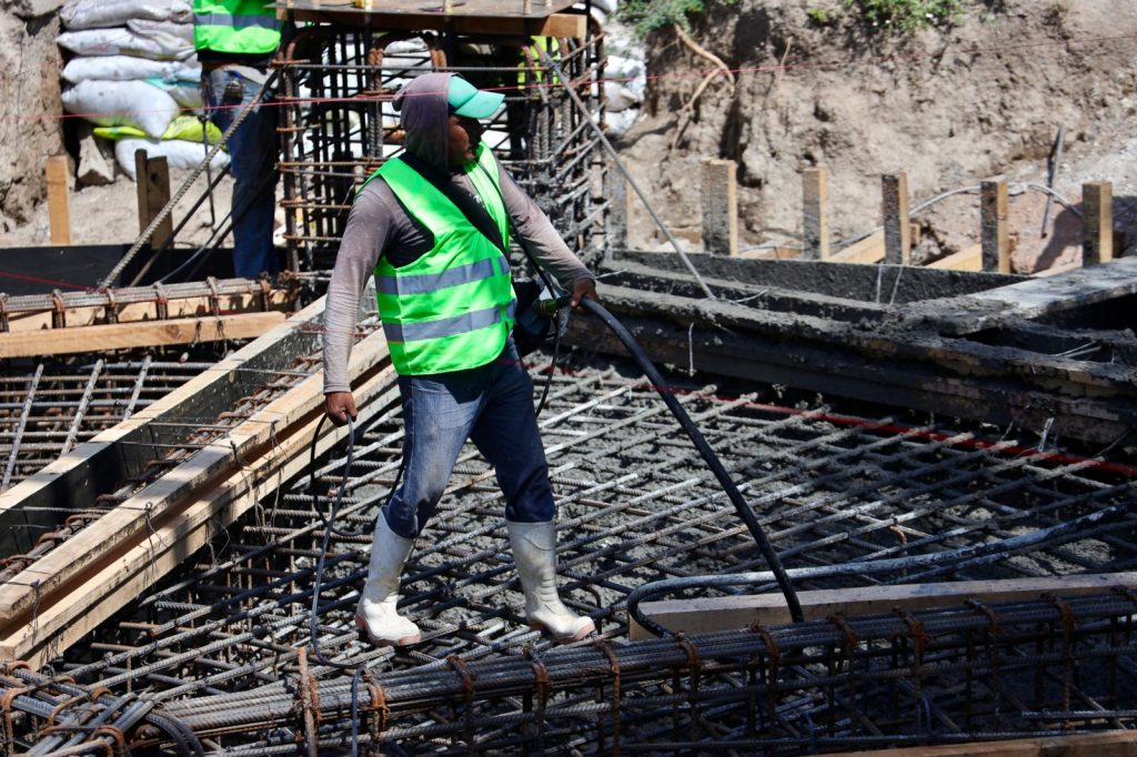 El proyecto inició desde el pasado mes de agosto con el desmantelamiento de la estructura sobrante de tanque que había en el sitio, se demolió y retiró la cimentación para proceder a la construcción de los nuevos cimientos del tanque elevado, cuya base es de concreto armado premezclado que fue colada recientemente.