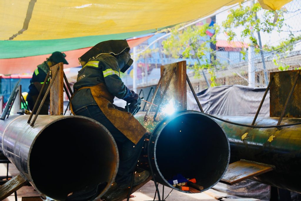 En las siguientes semanas se montarán las columnas hechas a base de perfil tubular, contraventeos que son a base de perfil de acero; además se montará el depósito de 300 metros cúbicos, fabricado de placa de acero.