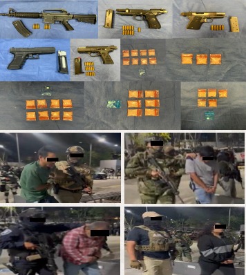 Armas: Una arma larga calibre .223 y tres armas cortas calibre 9 mm, todas de uso exclusivo de las Fuerzas Armadas; además de una aparente pistola de municiones a base de gas.