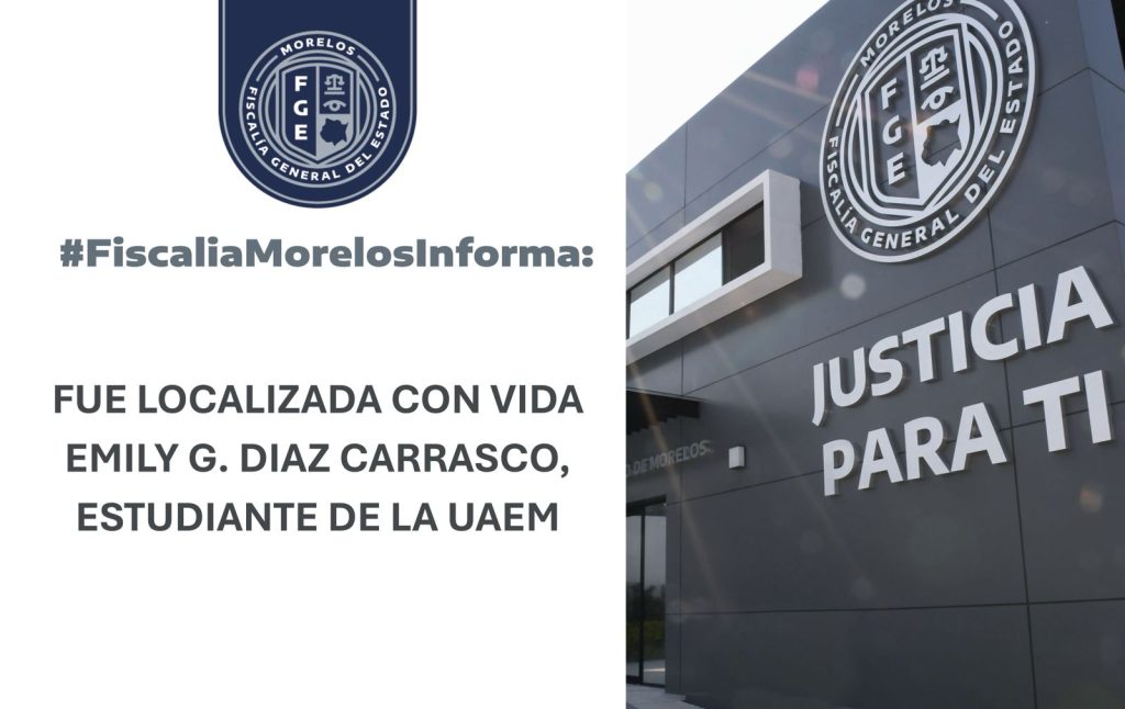 Cuernavaca, Morelos, 14 de octubre de 2025 – Emily Díaz Carrasco, la joven estudiante de 20 años de la Facultad de Farmacia de la Universidad Autónoma del Estado de México (UAEM), ha sido localizada sana y salva.