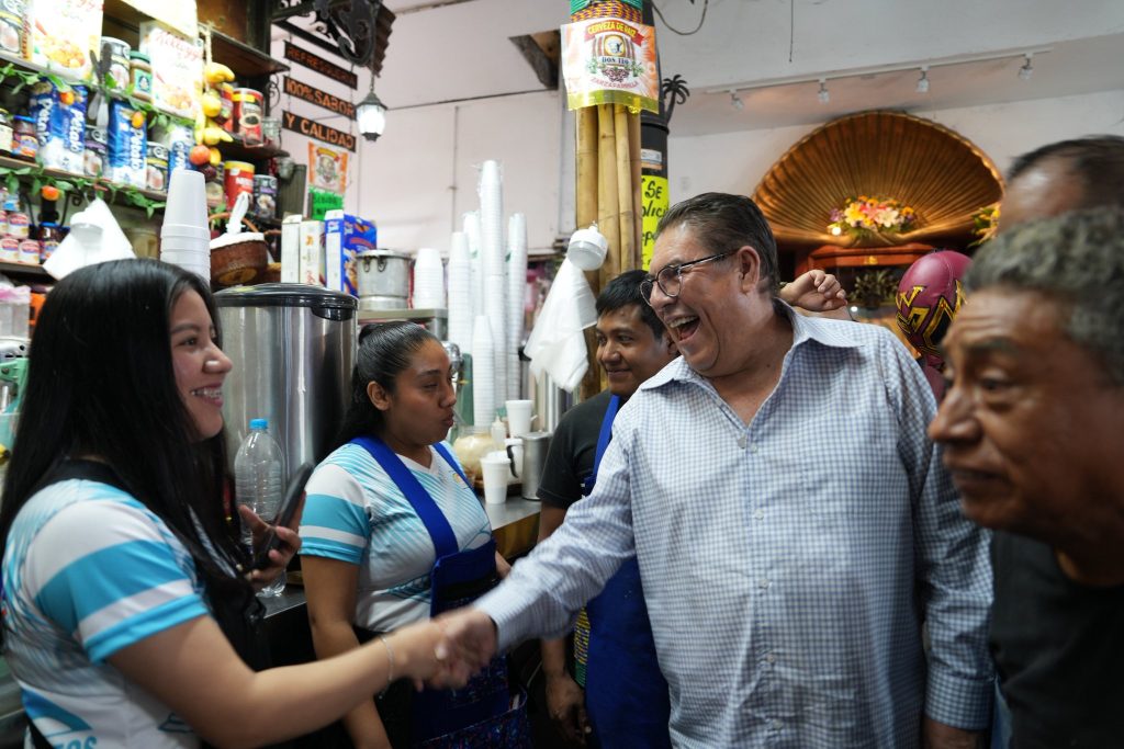 Mercado Salgado fue recibido con calidez por los locatarios, con quienes platicó sobre los retos del comercio diario, la frescura de los productos y estrategias para atraer clientela en tiempos económicos difíciles.