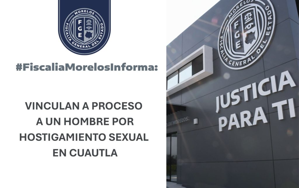 La Fiscalía Regional Oriente obtuvo un auto de vinculación a proceso en contra de Gabriel “N”, por la probable comisión del delito de hostigamiento sexual en perjuicio de una mujer, en hechos ocurridos en el municipio de Cuautla.