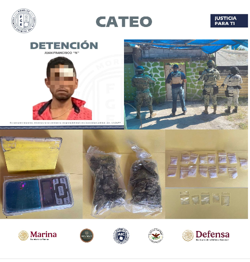 El detenido es Juan Francisco “N”, de 31 años de edad, quien quedó a disposición del agente del Ministerio Público (MP) especializado por delito contra la salud.