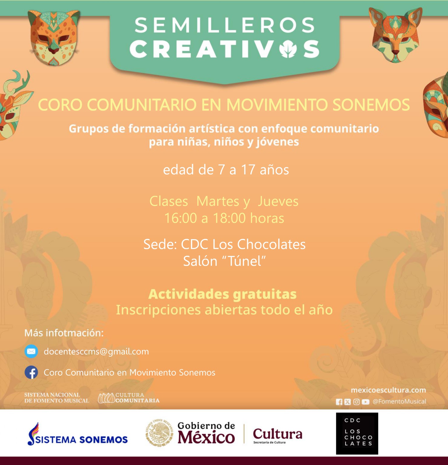En este marco, la dependencia informó que el Centro de Desarrollo Comunitario (CDC) “Los Chocolates” será la sede del coro, concebido como un espacio cercano, seguro y creativo donde las infancias y adolescencias puedan desarrollar habilidades artísticas, emocionales y sociales, bajo esta propuesta que fomenta la convivencia entre vecinas, vecinos y estudiantes, generando un impacto positivo en sus familias y en la vida comunitaria.