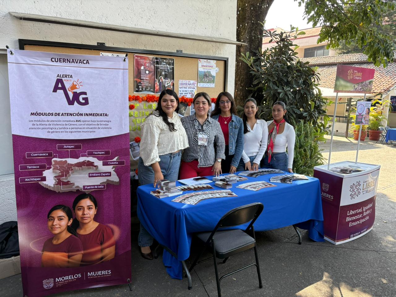 Durante la Feria de Seguridad realizada en la Universidad La Salle, Campus Cuernavaca, la Secretaría de las Mujeres, a través del Centro LIBRE y el módulo de Alerta de Violencia de Género (AVG), participó con módulos informativos dirigidos a estudiantes universitarios y personal docente.