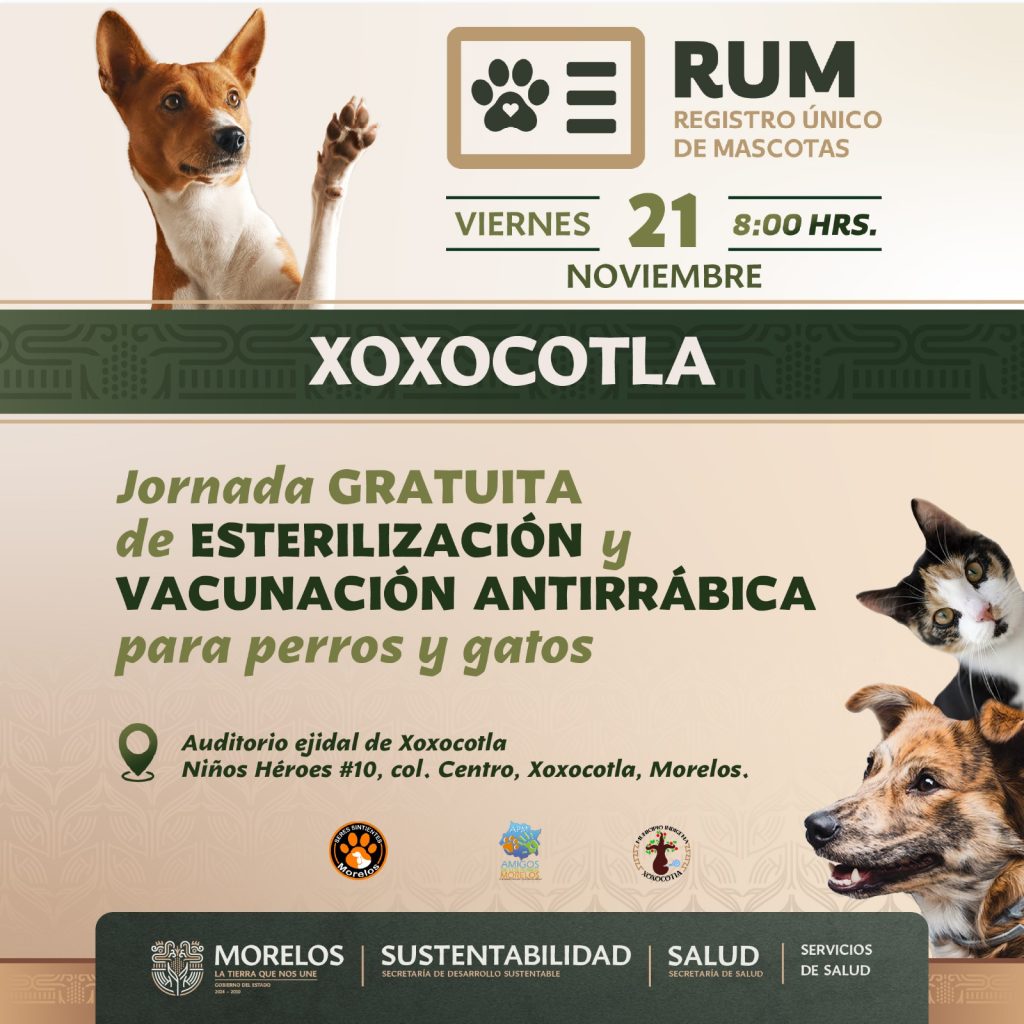 Durante esta actividad, se podrá realizar el Registro Único de Mascotas, una herramienta que permite generar un control más preciso y responsable sobre perros y gatos dentro del territorio estatal. Además, se ofrecerán servicios totalmente gratuitos de esterilización o vacunación antirrábica, dirigidos a perros y gatos de la comunidad.