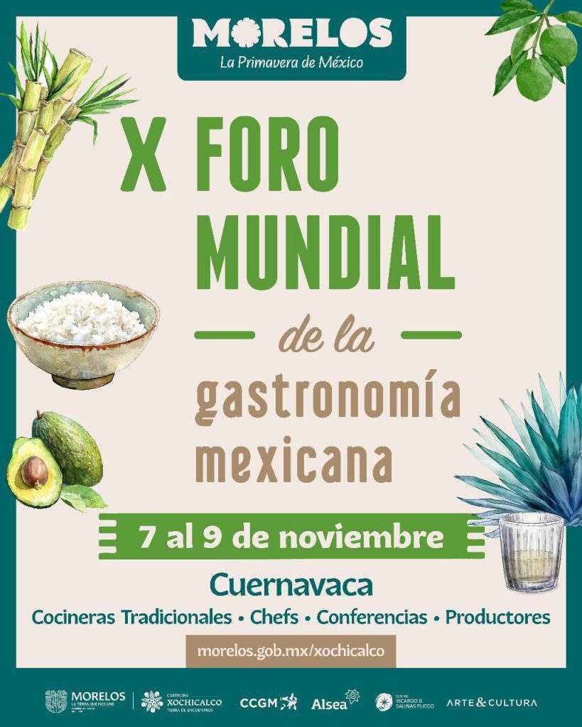 El Gobierno del Estado de Morelos invita a la ciudadanía, estudiantes, especialistas e investigadores a participar en el X Foro Mundial de la Gastronomía Mexicana, el encuentro más relevante del país dedicado a la cocina tradicional, que se llevará a cabo del 7 al 9 de noviembre en el Centro Histórico de Cuernavaca.