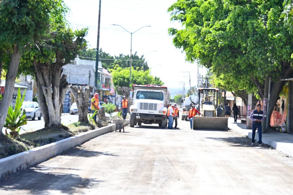 Los trabajos incluyen excavación, compactación del terreno, colocación de material de banco, pavimentación de 15 centímetros de espesor con concreto hidráulico, nivelación de pozos de visita y señalización horizontal.
