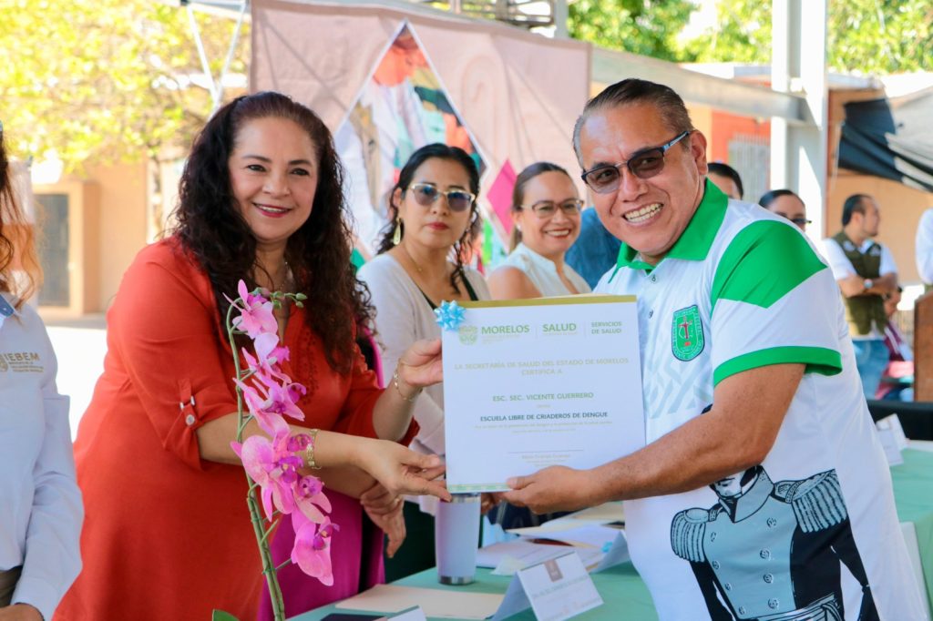 La Secretaría de Salud, a través de Servicios de Salud de Morelos (SSM), entregó placas de reconocimiento a 14 escuelas de los municipios de Jojutla, Tlaltizapán, Zacatepec, Tlaquiltenango, Xoxocotla, Puente de Ixtla y Amacuzac, por ser certificadas como espacios libres de criaderos del mosquito transmisor del dengue, zika y chikungunya.