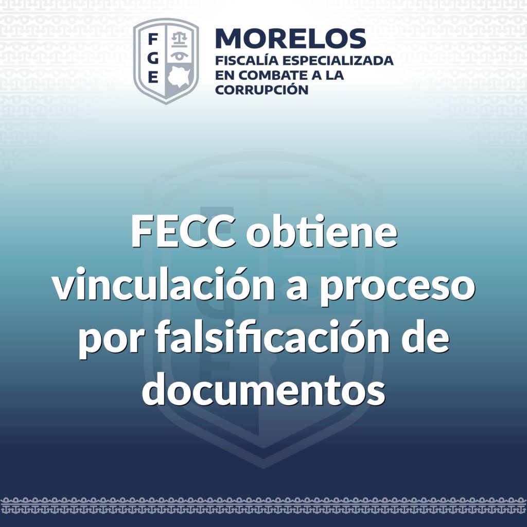 La Fiscalía Especializada en Combate a la Corrupción (FECC) obtuvo un auto de vinculación a proceso en contra de Julio César “N”, por su probable participación en el delito de falsificación de documento y uso de documento falso.