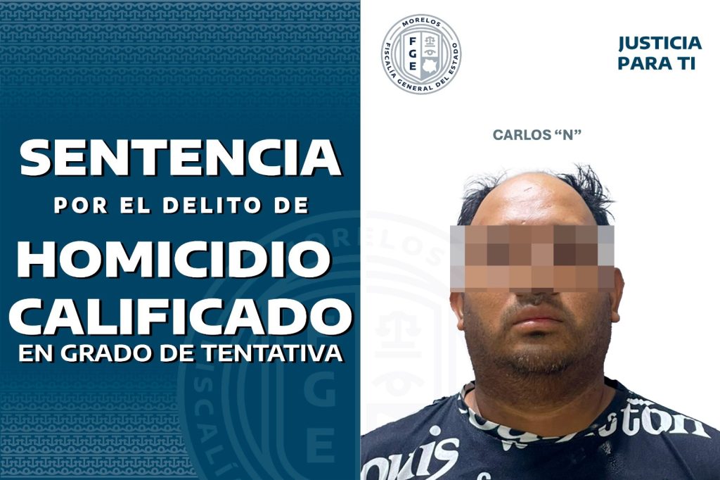 La Fiscalía General del Estado (FGE) de Morelos obtuvo una sentencia de 52 años y seis meses de prisión en contra de Carlos “N”, hallado penalmente responsable de la comisión de dos delitos, el de homicidio calificado en grado de tentativa, por el que le fueron impuestos 30 años de prisión y 22 años y seis meses por el robo de vehículo automotor agravado, en hechos suscitados en el municipio de Jiutepec.