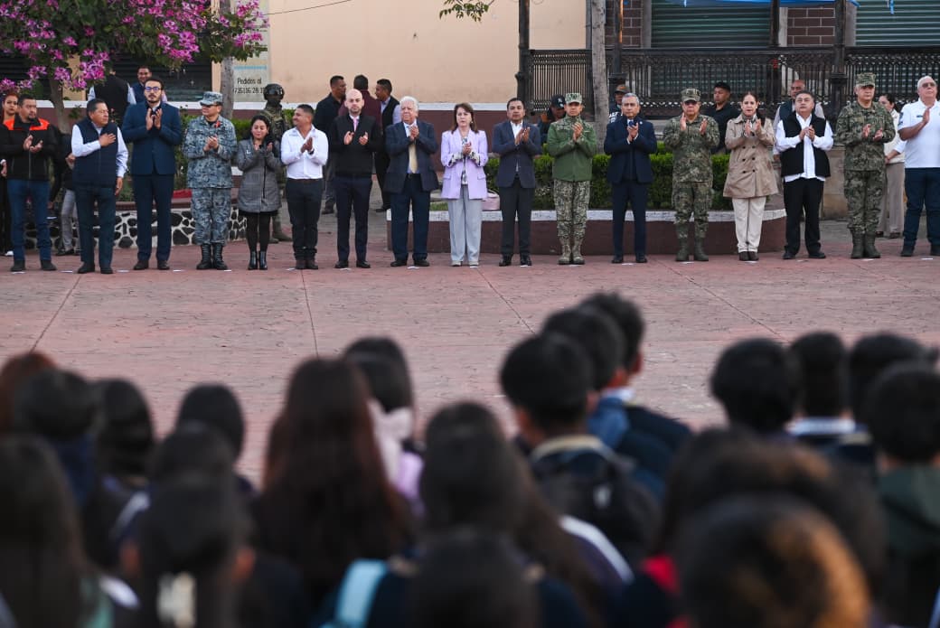 Previamente, la Gobernadora encabezó los honores a la Bandera en la explanada de Tlacotepec, acompañada del secretario de Gobierno, Edgar Maldonado; el presidente del Tribunal Superior de Justicia (TSJ), Juan Emilio Elizalde Figueroa; el diputado local Alfonso de Jesús Sotelo Martínez, en representación del Congreso del Estado; el alcalde Marino Santibáñez Alonso; autoridades de los tres niveles de gobierno; así como estudiantes del Emsad 06 Tlacotepec del Colegio de Bachilleres del Estado de Morelos (Cobaem) y de la Escuela Primaria “Josefa Ortiz de Domínguez”.