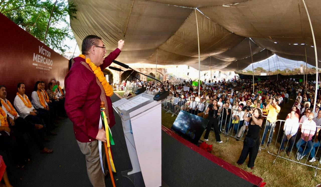 Ayala, Mor.— El senador Víctor Mercado Salgado, representante de Morena por el estado de Morelos, presentó su Primer Informe de Actividades Legislativas ante cientos de asistentes reunidos en la ex Hacienda de Coahuixtla, en el municipio de Ayala, donde compartió los principales resultados de su labor en el Senado de la República.