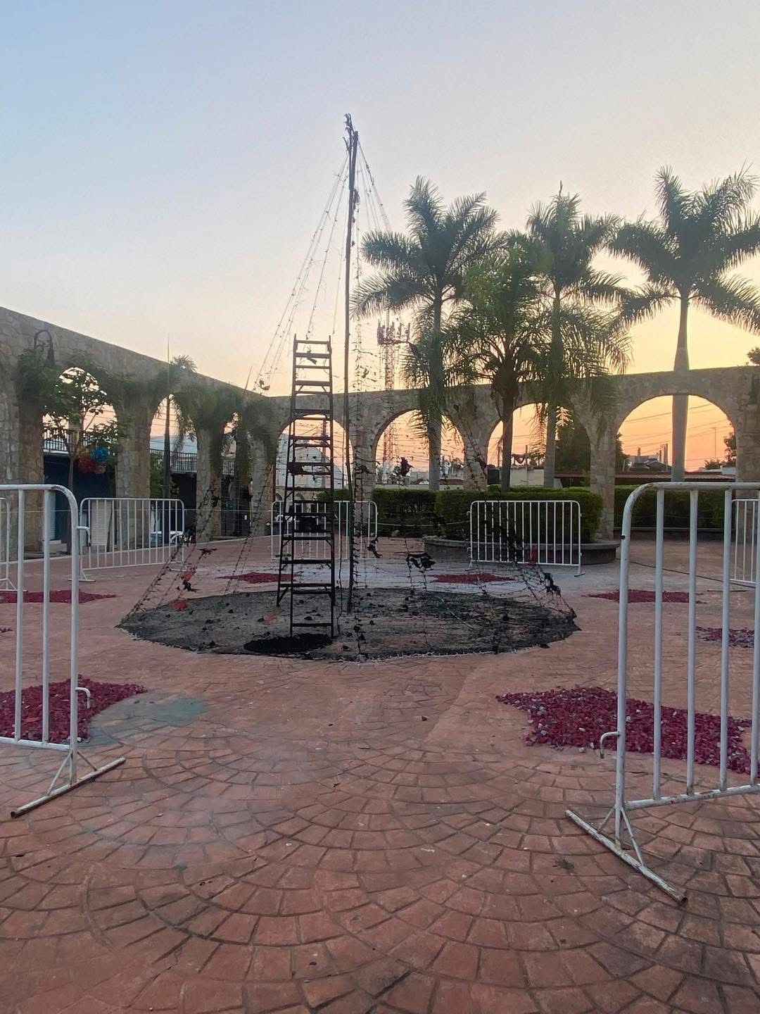 A través de la página oficial de la Ayudantía de Tehuixtla municipio de Jojutla, se informó a la población que esta madrugada fue incendiado el árbol de Navidad ubicado en la plaza cívica.