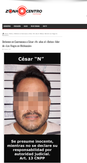 Como resultado de la coordinación operativa entre elementos de la Secretaría de la Defensa Nacional (Ejército Mexicano) y agentes del Grupo Fusión UECS, la tarde del martes 28 de agosto de 2018 fue detenido en Cuernavaca, Morelos, César “N”, conocido como “El Botox”, presunto líder del brazo armado del grupo delictivo “Los Viagra” (Los Viagras), que opera principalmente en el estado de Michoacán.