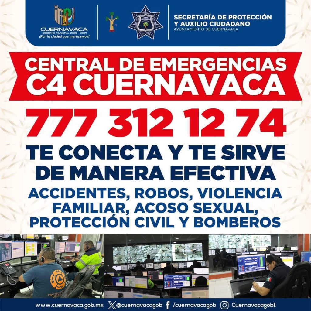 En la SEPRAC refrendamos nuestro compromiso con la seguridad y la atención oportuna a la ciudadanía. Ante cualquier emergencia en Cuernavaca, comunícate al 777 312 12 74.