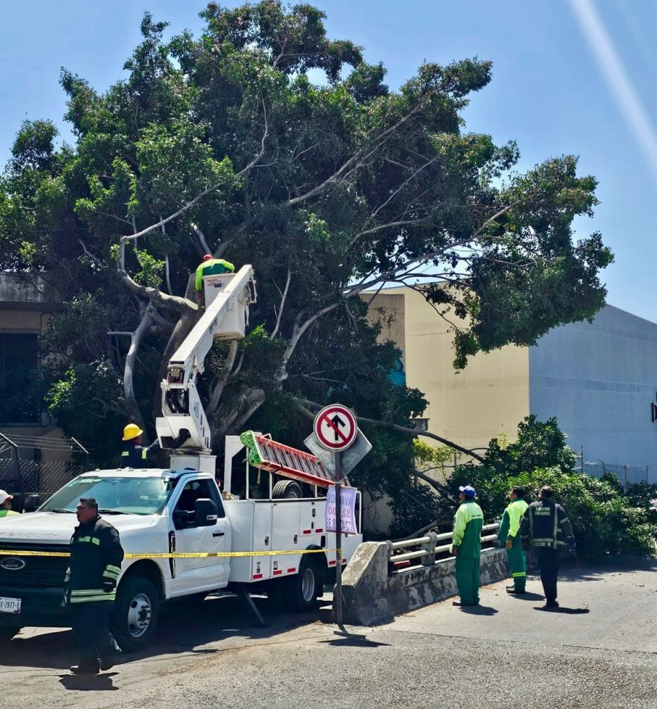 De manera inmediata, brigadas de Servicios Públicos acudieron al lugar para realizar las labores de seccionamiento y retiro, con el objetivo de salvaguardar la integridad de la ciudadanía y mantener la vialidad en condiciones seguras.