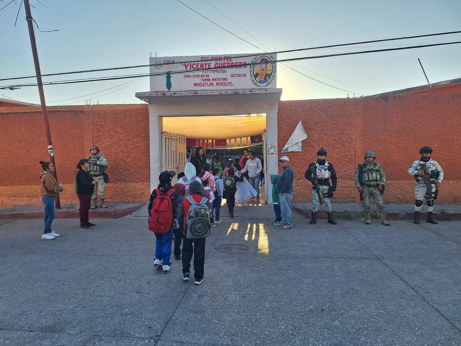 Como parte de las acciones preventivas para fortalecer la seguridad en planteles educativos, el Ayuntamiento de Miacatlán implementó el programa Escuela Segura, en coordinación con la Secretaría de la Defensa Nacional (SEDENA) y la Guardia Nacional.