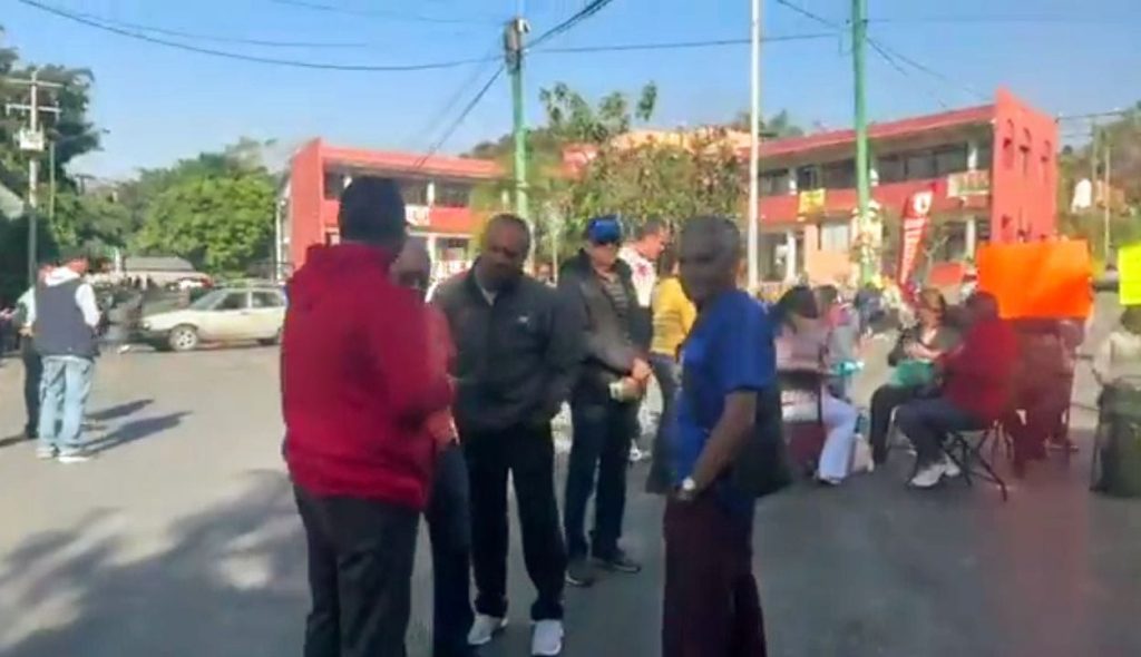 Trabajadores jubilados y pensionados del SAPAC realizan un bloqueo sobre avenida Morelos de Cuernavaca para exigir el pago de su aguinaldo que se les adeuda del 2025.