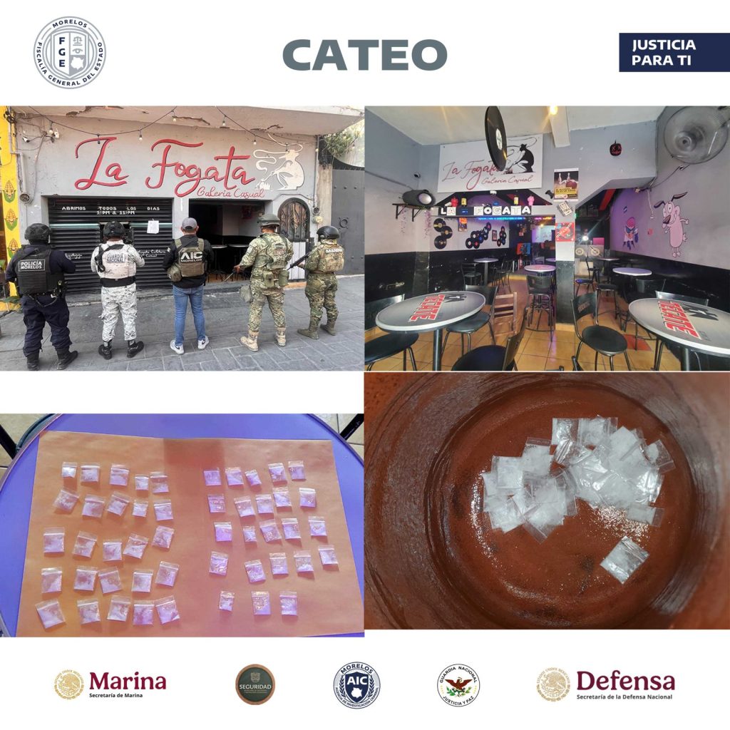 Elementos del Centro de Operaciones Estratégicas (COE) de la Fiscalía Regional Sur Poniente ejecutaron una orden de cateo en un bar del municipio de Jojutla, presuntamente utilizado para la venta de drogas, en donde aseguraron supuestas dosis de material sólido cristalino similar a la droga “cristal”.