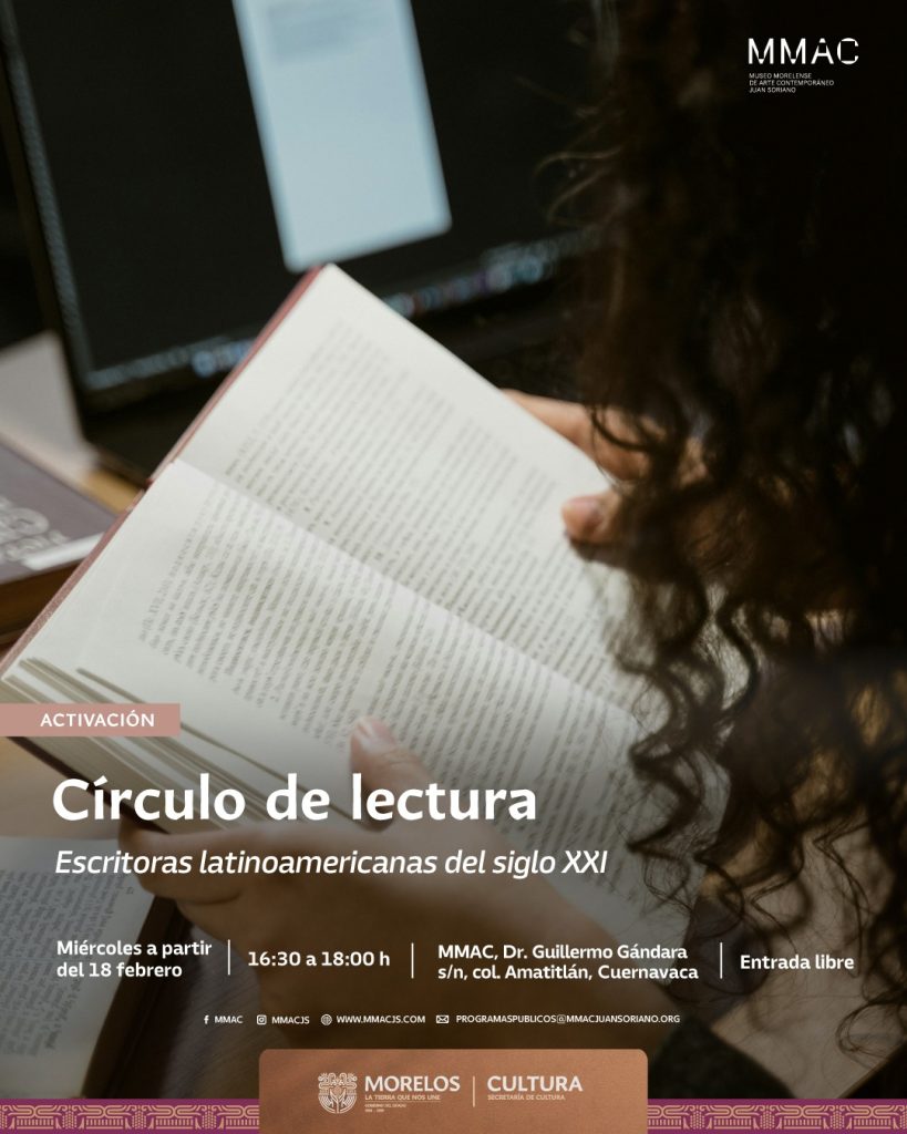 El Museo Morelense de Arte Contemporáneo Juan Soriano (MMAC) realizará el Círculo de Lectura para mujeres mayores de 18 años, a partir del 18 de febrero, todos los miércoles de 16:30 a 18:00 horas, con entrada libre, como una iniciativa de la Secretaría de Cultura del Gobierno de Morelos, “La tierra que nos une”, orientada a promover la lectura, el pensamiento crítico y el diálogo comunitario a través de la literatura.